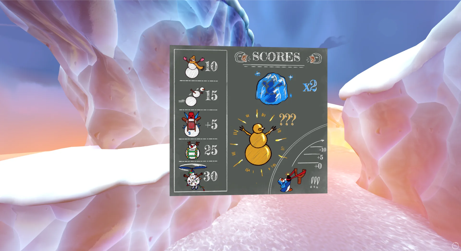 15-minute slingshot showdown—snowballs, power-ups, and high scores.