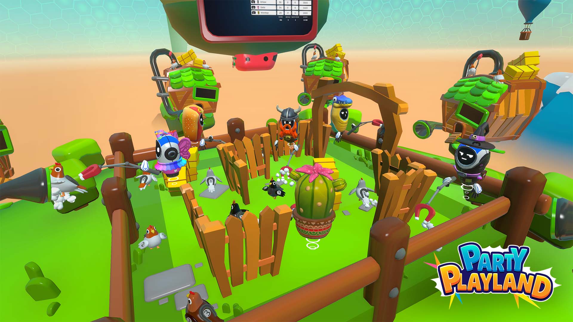In this family-friendly party game experience, you are transported to a colorful world where you and your friends will compete to become the latest and greatest Party Champion. Discover a freeroam VR playground like never before ! Each mini-game offers a unique challenge and adventure. Whether you’re casting your fishing rod to snag chickens, squashing invading crabs, avoiding traps, and more. Every round promises thrills and laughter. Party Playland guarantees an unforgettable party experience filled with endless fun and excitement!